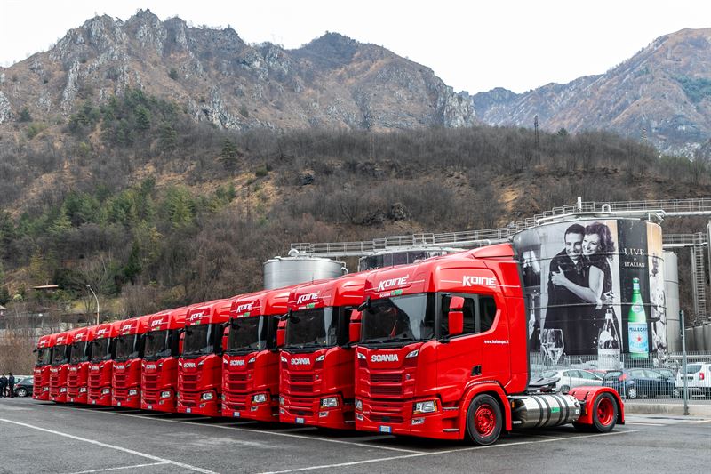 Η μεταφορική Koiné, έχει παραλάβει συνολικά 50 φορτηγά με υγροποιημένο φυσικό αέριο Scania R 410, τα περισσότερα από τα οποία θα χρησιμοποιηθούν για τη Sanpellegrino. Το ενδιαφέρον για τη χρηση υγροποιημένου αερίου στις επιχειρήσεις βαρέων φορτηγών στην Ιταλία αυξάνεται ραγδαία και σήμερα υπάρχουν 39 πρατήρια καυσίμων για υγροποιημένο φυσικό αέριο (LNG) στη χώρα με επιπλέον 25 σταθμούς σε εξέλιξη.