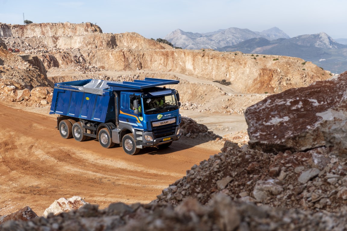 Στην πράξη, δηλαδή στο εργοτάξιο, τα δυναμικά χαρακτηριστικά του DAF χαρακτηρίζονται κυρίως από αδιάλειπτη πληροφόρηση και ακρίβεια, χάρη κυρίως στο εξαιρετικό τιμόνι. Η απόσταση από έδαφος και η γωνία προσέγγισης δεν αφήνουν περιθώρια για παρατηρήσεις ενώ, κλείνοντας, θα πρέπει να αναφέρουμε και μία έξυπνη λεπτομέρεια –το σκαλοπάτι εξωτερικά στην πλευρά του οδηγού που του επιτρέπει να ελέγχει το φορτίο.