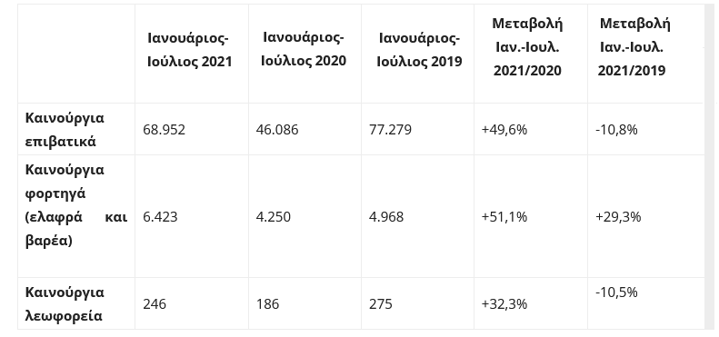 Αναλυτικά, οι ταξινομήσεις του πρώτου επταμήνου 2021 σε σύγκριση με αυτές του πρώτου επταμήνου 2019 και 2020 έχουν ως εξής: