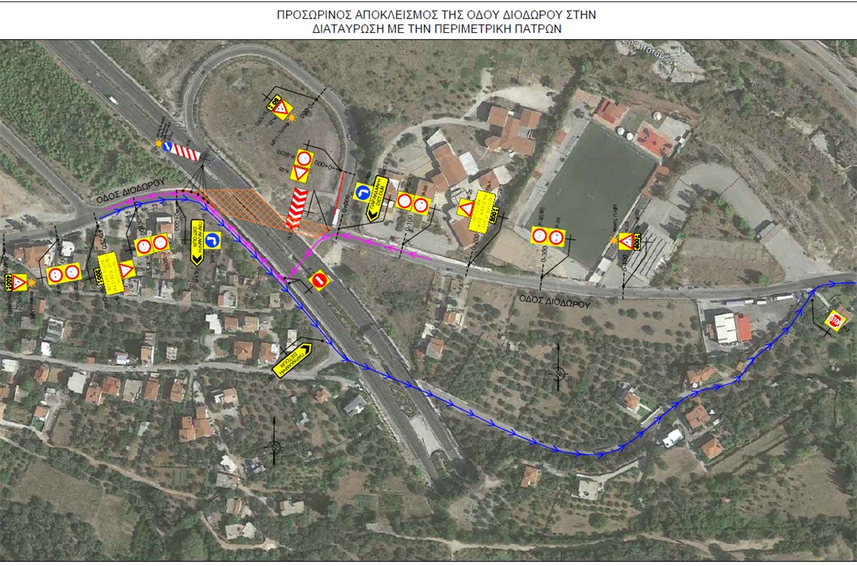 Η Ολυμπία Οδός ανακοίνωσε ότι, στο πλαίσιο εργασιών ανακατασκευής/ενίσχυσης της Γέφυρας της Κάτω Διάβασης Κ603 της Περιμετρικής Πάτρας (Χ.Θ. 206) και για τις ανάγκες κατεδάφισης τμήματος αυτής, από τις 07:00 το πρωί της Παρασκευής 21/07/2023 έως το αργότερο τις 12:00 το πρωί της Δευτέρας 24/07/2023 θα πραγματοποιηθεί προσωρινός αποκλεισμός της οδού Διοδώρου στο τμήμα της που διέρχεται κάτω από τη Γέφυρα της Περιμετρικής Πάτρας, όπου η κυκλοφορία θα εξυπηρετείται εναλλακτικά μέσω τοπικής παράκαμψης από όμορες οδούς ακολουθώντας τη σχετική σήμανση, όπως φαίνεται στο Σχηματικό διάγραμμα.
