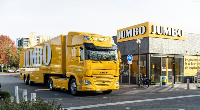 Η DAF Trucks παρέδωσε το πρώτο ηλεκτρικό φορτηγό της στην ολλανδική αλυσίδα σούπερ μάρκετ Jumbo. Το CF Electric αναπτύχθηκε σε κοινοπραξία μεταξύ της DAF και της VDL και θα χρησιμοποιηθεί από τη Jumbo για την προμήθεια των σουπερμάρκετ στα νότια της Ολλανδίας. Ο διευθύνων σύμβουλος της Jumbo Frits van Eerd παρέλαβε τα κλειδιά του DAF CF Electric από τον...