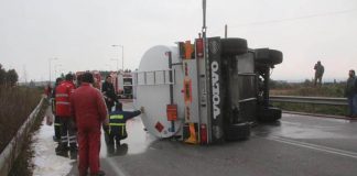 Ανατροπή βυτιοφόρου στην εθνική Αθηνών – Κορίνθου
