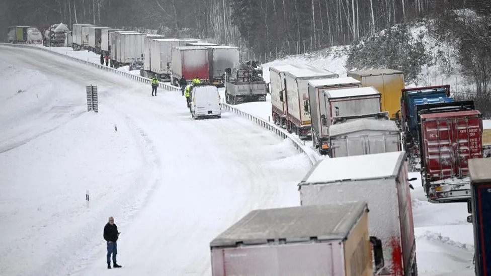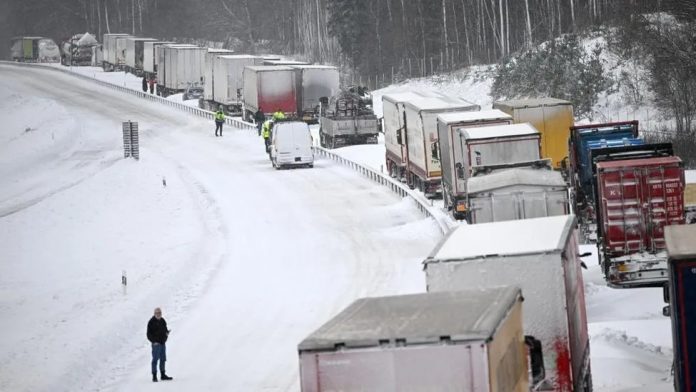 Στον αυτοκινητόδρομο Ε22 στην περιοχή Skane της νότιας Σουηδίας άνθρωποι εγκλωβίστηκαν σε 1.000 οχήματα μέσα σε πυκνή χιονόπτωση για περισσότερες από 24 ώρες.