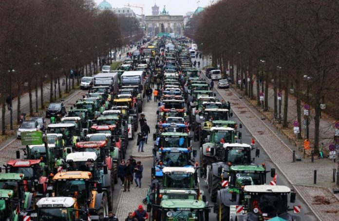 Με συνθήματα όπως «Φτάνει πια» και «Πρέπει να πεινάσετε για να μας καταλάβετε» πομπή από εκατοντάδες τρακτέρ έφτασε στο κέντρο του Βερολίνου.