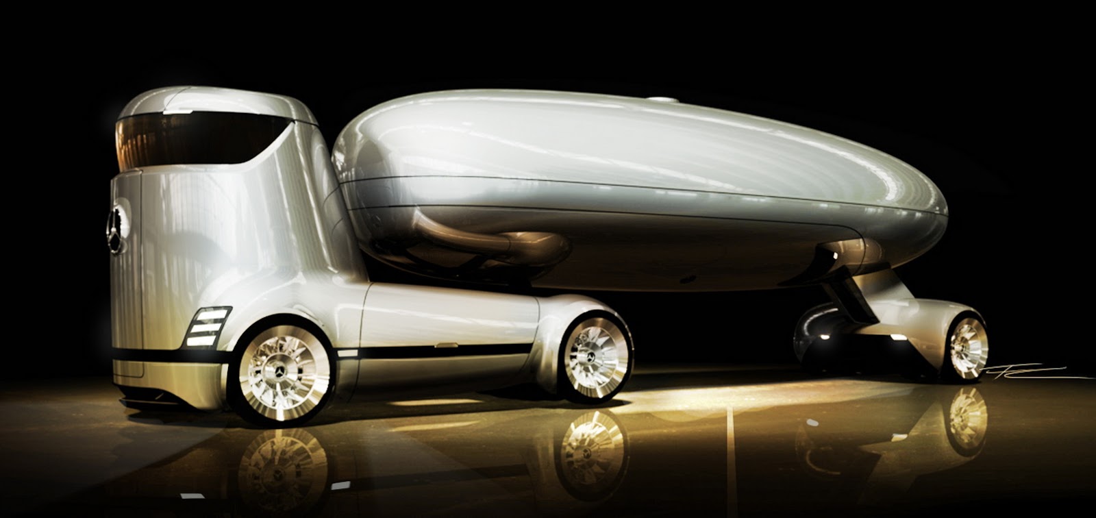 Τα μυαλά των σχεδιαστών γεννούν συνεχώς ιδέες για το πως θα είναι τα οχήματα που θα κυκλοφορούν στους δρόμους τις επόμενες δεκαετίες. Μετά τα εντυπωσιακά σχέδια του φουτουριστικού τράκτορα της Audi σειρά έχει η Mercedes. O ταλαντούχος Francisco Calado οραματίζεται και μας παρουσιάζει ένα case study για τον τράκτορα της Mercedes, με το όνομα E-truck. Στις φωτογραφίες που ακολουθούν βλέπουμε το – στα χαρτιά προς το παρών – γρηγορότερο και πιο αποδοτικό βυτιοφόρο του κόσμου.