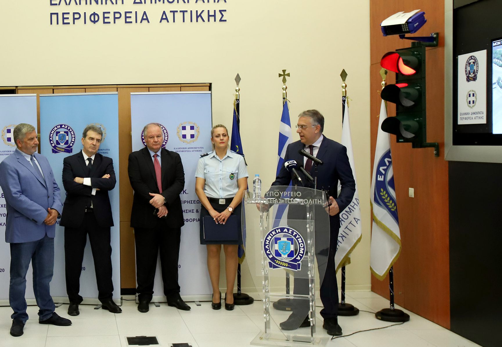 Τα εγκαίνια του ανανεωμένου Θαλάμου Επιχειρήσεων Παρακολούθησης και Ελέγχου Κυκλοφορίας, (ΘΕΠΕΚ), που ανακαινίστηκε με μέριμνα και έξοδα της Περιφέρειας Αττικής, και παράλληλα ένα νέο πρόγραμμα με την εγκατάσταση «έξυπνων» σηματοδοτών, που θα καταγράφουν τους παραβάτες, πραγματοποίησαν σήμερα, στον χώρο όπου στεγάζεται ο Θάλαμος στο ισόγειο της ΓΑΔΑ, ο υπουργός Προστασίας του Πολίτη, Μιχάλης Χρυσοχοΐδης και ο περιφερειάρχης, Γιώργος Πατούλης, παρουσία του υπουργού Εσωτερικών, Τάκη Θεοδωρικάκου, του υφυπουργού Υποδομών και Μεταφορών, Γιάννη Κεφαλογιάννη και του αρχηγού της ΕΛΑΣ, αντιστράτηγου Μιχάλη Καραμαλάκη.