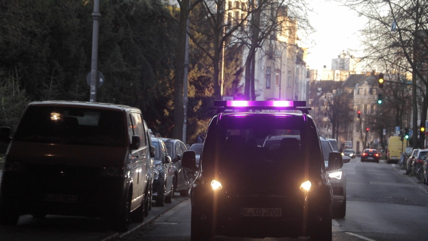 Οι συγκεκριμένες δοκιμές, οι οποίες διαδέχτηκαν μία ανάλογη έρευνα στις ΗΠΑ, πραγματοποιήθηκαν σε συνεργασία με το Πανεπιστήμιο Τεχνολογίας του Chemnitz στη Γερμανία. Οι ερευνητές προχώρησαν σε δοκιμές δύο ακόμη χρωμάτων, πέραν του λευκού, στην ειδική μπάρα που ήταν προσαρμοσμένη στην οροφή του αυτοκινήτου με πρωταρχικό στόχο οι φωτεινές αυτές ενδείξεις να είναι ορατές από απόσταση 500 μέτρων. Αντίθετα, στις αμερικανικές δοκιμές, τα φώτα ήταν τοποθετημένα στο εσωτερικό μέρος του παρμπρίζ.