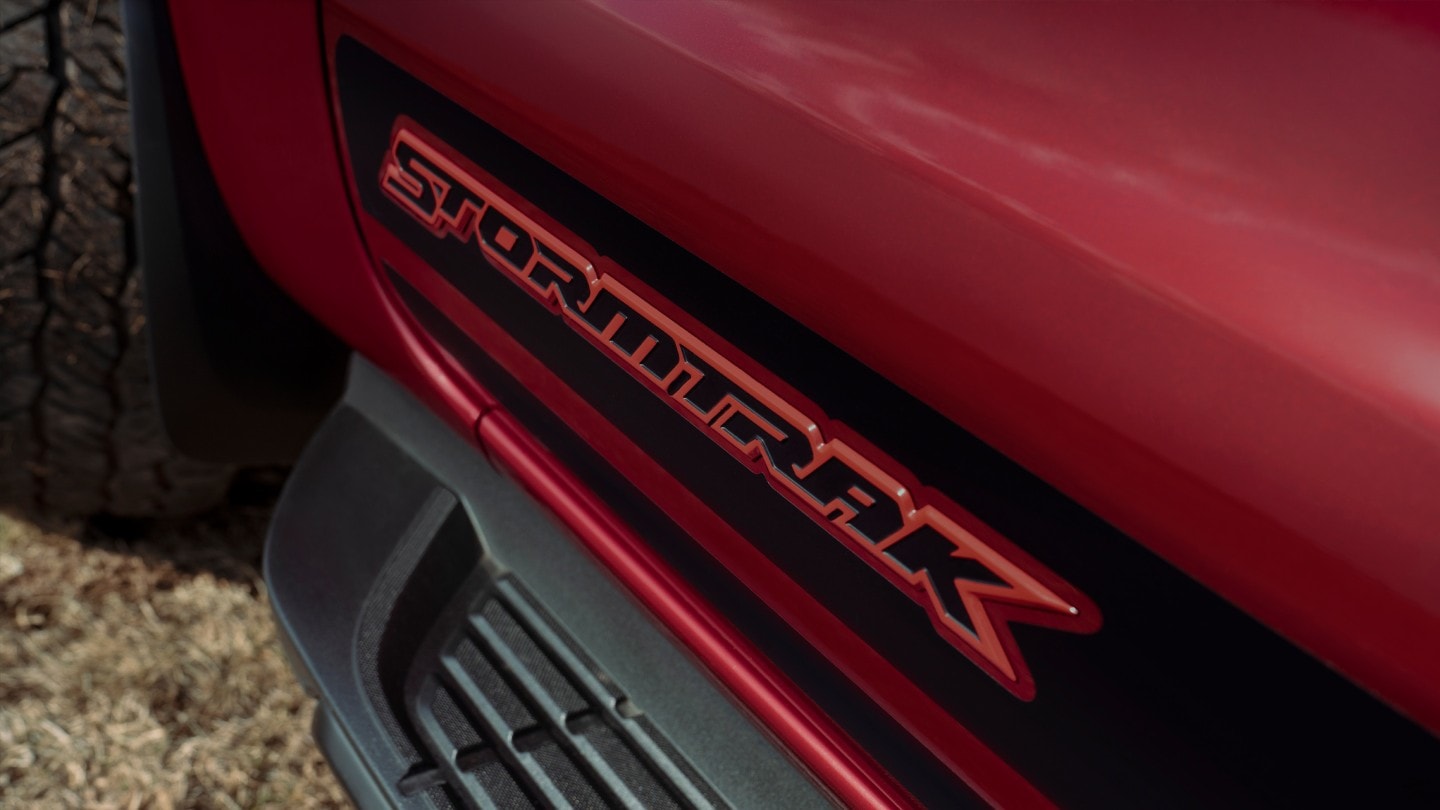 Με αποκλειστικό χρώμα αμαξώματος Rapid Red, αποκλειστικές ζάντες ελαφρού κράματος 18″ μαύρης απόχρωσης, διακοσμητικά στοιχεία και αυτοκόλλητα διακριτικά Stormtrak, το όχημα εντυπωσιάζει στο δρόμο κάθε στιγμή. Επιπροσθέτως, ο προηγμένος πετρελαιοκινητήρας Bi-Turbo απόδοσης 213PS και ροπής 500 Nm με αυτόματο κιβώτιο ταχυτήτων 10 σχέσεων δηλώνει το γνήσιο pick-up όχημα παντός εδάφους. Ικανό και άνετο στους δρόμους της πόλης και τις επαρχιακές οδούς, αλλά και για διαδρομές εκτός δρόμου.