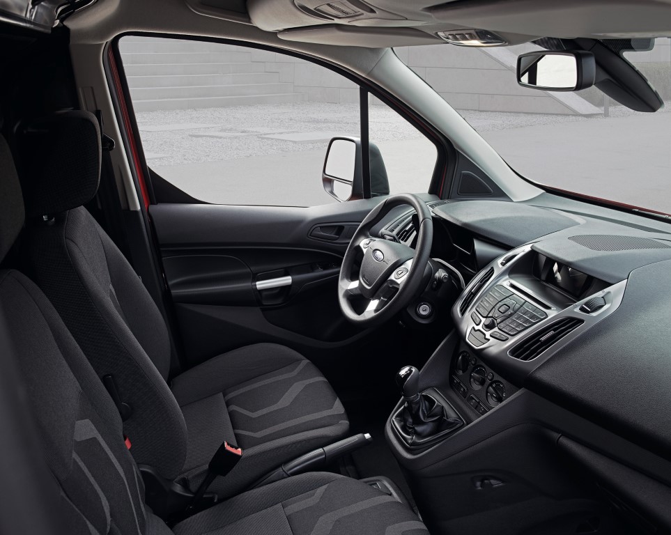 Όσον αφορά στο εσωτερικό, το Transit Connect προσφέρει και άλλα έξυπνα χαρακτηριστικά στους πελάτες όπως είναι το ευέλικτο, διπλό κάθισμα συνοδηγού για να ταξιδεύουν δύο επιβάτες δίπλα στον οδηγό. Το εξωτερικό κάθισμα του συνοδηγού αναδιπλώνεται για τη μεταφορά φορτίων ενώ το εσωτερικό (μεσαίο) κάθισμα «πέφτει» ώστε να εκτελεί χρέη επιφάνειας εργασίας, ή ανοίγει αποκαλύπτοντας έναν αποθηκευτικό χώρο. Λειτουργικά χαρακτηριστικά στην καμπίνα περιλαμβάνουν το σύστημα συνδεσιμότητας Ford SYNC μέσω κινητού και πολλαπλούς αποθηκευτικούς χώρους.