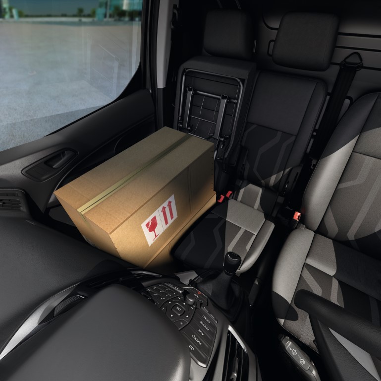 Μπορεί να μεταφέρει δύσχρηστα και μεγάλα φορτία με τις δυνατότητες που του προσφέρουν το άνοιγμα του διαχωριστικού, το αναδιπλούμενο κάθισμα συνοδηγού και το μεγαλύτερο άνοιγμα συρόμενης πλαϊνής πόρτας στην κατηγορία (L2 έκδοση) για τη φόρτωσης μιας Ευρωπαλέτας. Οι μηχανικοί της Ford εξέλιξαν το καινοτόμο σύστημα ανοίγματος στο διαχωριστικό ώστε να μπορεί το Transit Connect να μεταφέρει με ασφάλεια επιμήκη φορτία όπως σωλήνες ή ρολά δαπέδων μέχρι 3,4 μ. (L2) και μέχρι 3,0 μ. στην έκδοση κοντού μεταξονίου (L1). Γι’ αυτό χρειάστηκε άνοιγμα με μεντεσέδες στο διαχωριστικό και ένας ειδικός μηχανισμός αναδίπλωσης / βύθισης για το εξωτερικό κάθισμα του συνοδηγού, ώστε να δημιουργηθεί ένα προφίλ σε σχήμα δίσκου στην επιφάνεια της πλάτης του καθίσματος του συνοδηγού. Επίσης, το ταμπλό σχεδιάστηκε έτσι ώστε να περνάνε τα μακριά αντικείμενα από κάτω. Ένα ειδικό προφίλ στο πάνω τμήμα του ατσάλινου διαχωριστικού επιτρέπει επίσης κάτι μοναδικό για την κατηγορία: τη μεταφορά πλακών 2,4 x 1,2 μ. στο L2 van.