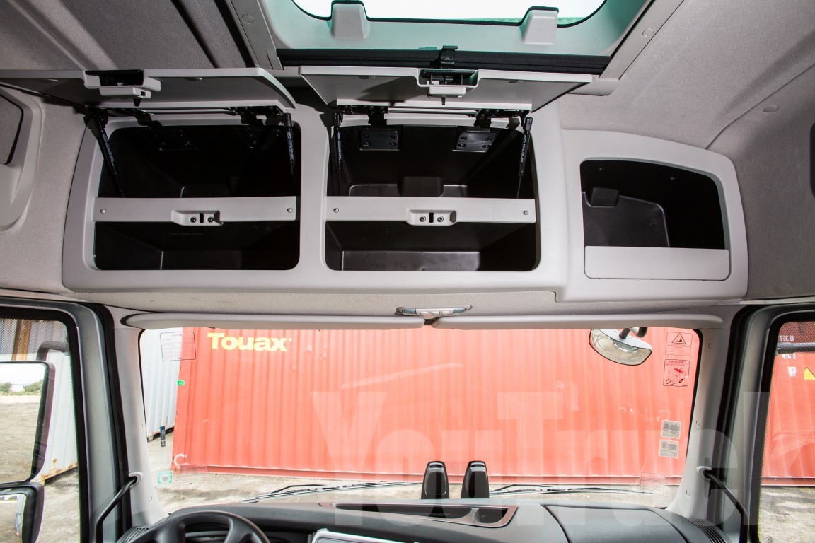 Η καμπίνα μεσαίου μεγέθους διαθέτει ακόμα και αποθηκευτικούς χώρους εύκολης πρόσβασης εξωτερικά, κυρίως για μικροαντικείμενα καθημερινής χρήσης. Η αερανάρτηση της καμπίνας βελτιώνει σημαντικά την άνεση ενώ το άνοιγμα των θυρών αποκαλύπτουν φαρδιά και σταθερά σκαλοπάτια που διευκολύνουν την διαδικασία εισόδου/εξόδου.