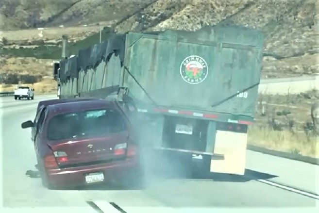 Απο την άλλη πλευρά του Ατλαντικού μας έρχεται αυτό το απίστευτο περιστατικό. Στις εικόνες που τράβηξε ένας οδηγός σε αυτοκινητόδρομο της Καλιφόρνια, βλέπουμε ένα αυτοκίνητο να έχει σφηνωθεί πίσω απο ένα φορτηγό. Το παράδοξο είναι ότι ο οδηγός του φορτηγού δείχνει να μην έχει καταλάβει ότι σέρνει ένα άλλο όχημα και συνεχίζει κανονικά την πορεία του, για 6 χιλιόμετρα όπως ανέφερε ο οδηγός που τράβηξε το βίντεο. Τελικά, ο οδηγός του φορτηγού σταματάει και το μαρτύριο του οδηγού του αυτοκινήτου τελειώνει. Το μεγάλο ερώτημα είναι πως είναι δυνατόν ο οδηγός του φορτηγού να μην κοίταξε τους καθρέφτες για τόσο μεγάλη απόσταση!