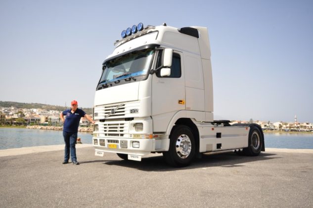 Τον Νίκο Γεωργιουδάκη συναντήσαμε με ένα VOLVO FH 460. Είναι 34 ετών, παντρεμένος με τρεις κορούλες, 12, 9 και 3 ετών αντίστοιχα. Δηλώνει φανατικός VOLVάκιας, «μέχρι κόκαλο» όπως μας είπε! Το 2005 ξεκίνησε τις μεταφορές μόνος του στο Ρέθυμνο, με έδρα το Ατσιπόπουλο και σήμερα μεταφέρει υγρά τρόφιμα με ανοξείδωτο βυτίο 30.000 λίτρων, καθώς και ζωοτροφές και ευρωπαλέτες.