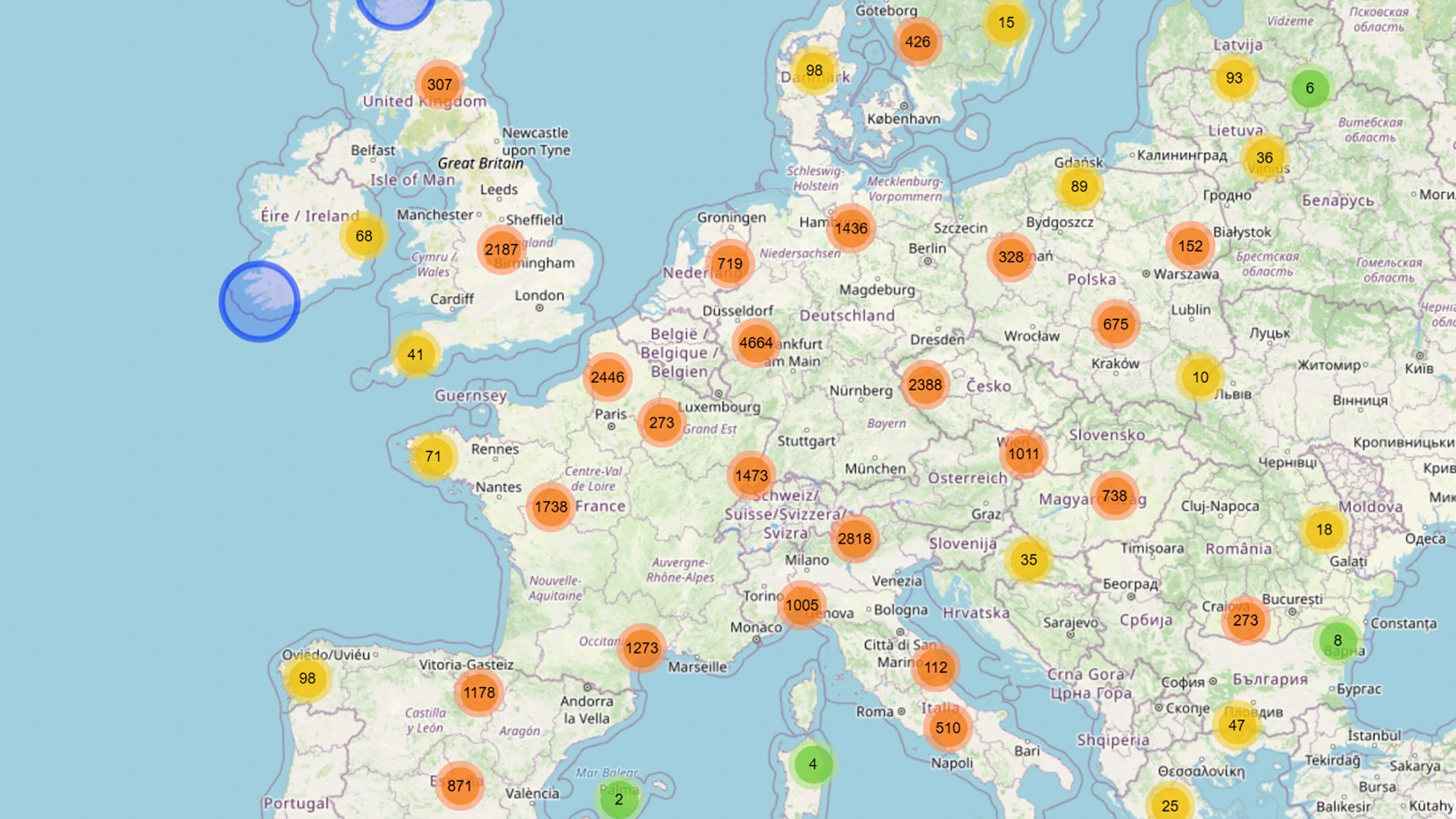 Δείχνει ότι οι θέσεις στάθμευσης φορτηγών συγκεντρώνονται σε πυκνοκατοικημένες περιοχές στην Κεντρική Ευρώπη. Είναι πιο πυκνές γύρω από σημαντικές βιομηχανικές περιοχές και μεγάλες πόλεις -όπως η Βόρεια Ιταλία, το Παρίσι, το ευρύτερο Μάντσεστερ, το Βερολίνο και η Φρανκφούρτη- και ακολουθούν τους κύριους ευρωπαϊκούς δρόμους.