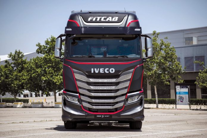 Έτσι λοιπόν, το Iveco Fit Cab φέρνει τον οδηγό στο επίκεντρο της προσοχής του κατασκευαστή με στόχο τη βελτίωση της ευεξίας του, της άνεσης και της απόδοσής του, περιορίζοντας τις συνέπειες της πολύωρης οδήγησης. Το σπορτίφ λογότυπο, εμπνευσμένο από προγράμματα γυμναστικής σηματοδοτεί τον πρόσθετο ρόλο αυτής της ειδικής καμπίνας ως «γυμναστήριο σε τροχούς», με ειδικά όργανα που βελτιώνουν την κινητικότητα, τη σταθερότητα, τη δύναμη και τη συνολική ικανότητα του οδηγού. Πιο συγκεκριμένα, ειδικά σημεία αγκύρωσης ενσωματώνονται εξωτερικά της καμπίνας για να μπορούν να φιλοξενούν ειδικά σχεδιασμένα αξεσουάρ γυμναστικής ενώ το σκαλοπάτι κάτω από τη μάσκα μπορεί να επεκταθεί περεταίρω εξυπηρετώντας διάφορες περιπτώσεις ασκήσεων εκγύμνασης. Στο εσωτερικό της καμπίνας και συγκεκριμένα στον πίσω τοίχο υπάρχει αναρτημένη μια πολυλειτουργική τροχαλία ενώ ενσωματωμένη στην οροφή βρίσκεται μια κατασκευή πολλαπλών λαβών. Το… κινητό γυμναστήριο ολοκληρώνουν ιμάντες με λαβές αντοχής και διάφοροι αλτήρες.