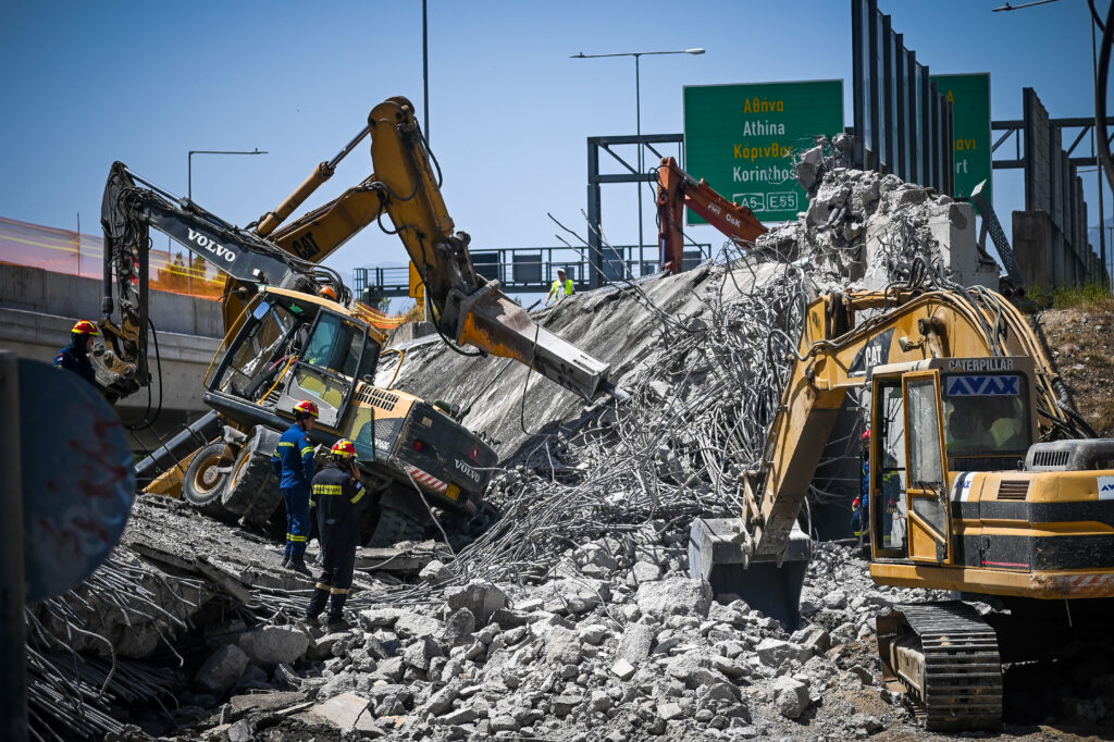 Μετά την κατάρρευση της γέφυρας, ζητήθηκε η συνδρομή μικρών σκαπτικών μηχανημάτων, τα οποία θα αφαιρούσαν σιγά- σιγά μικρά τμήματα ώστε να διευκολύνεται η πρόσβαση των διασωστών της ΕΜΑΚ κάτω από χαλάσματα. Κατά πληροφορίες, οι δυο πλάκες 700 τ.μ. που κατέρρευσαν σαν χάρτινοι πύργοι έφεραν 100 με 150 τόνους σίδερα και περίπου 350 τόνους μπετόν.