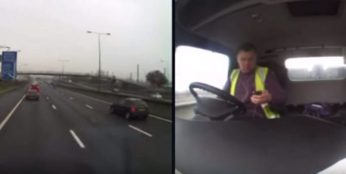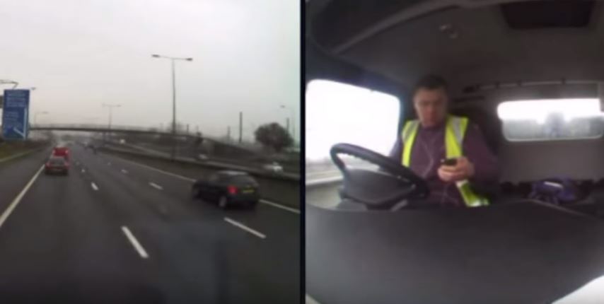 Άλλο ένα βίντεο που δείχνει τα τραγικά αποτελέσματα της οδήγησης και της απόσπασης της προσοχής εξαιτίας της χρήσης κινητού.Το συμβάν δημοσίευσε η αστυνομία της Μ.Βρετανίας και δείχνει το Ρουμάνο οδηγό να προσπαθεί να στείλει μήνυμα απο το κινητό του και να συγκρούεται με σταματημένα αυτοκίνητα.Οι επιβάτες των αυτοκινήτων  τραυματίστηκαν.
