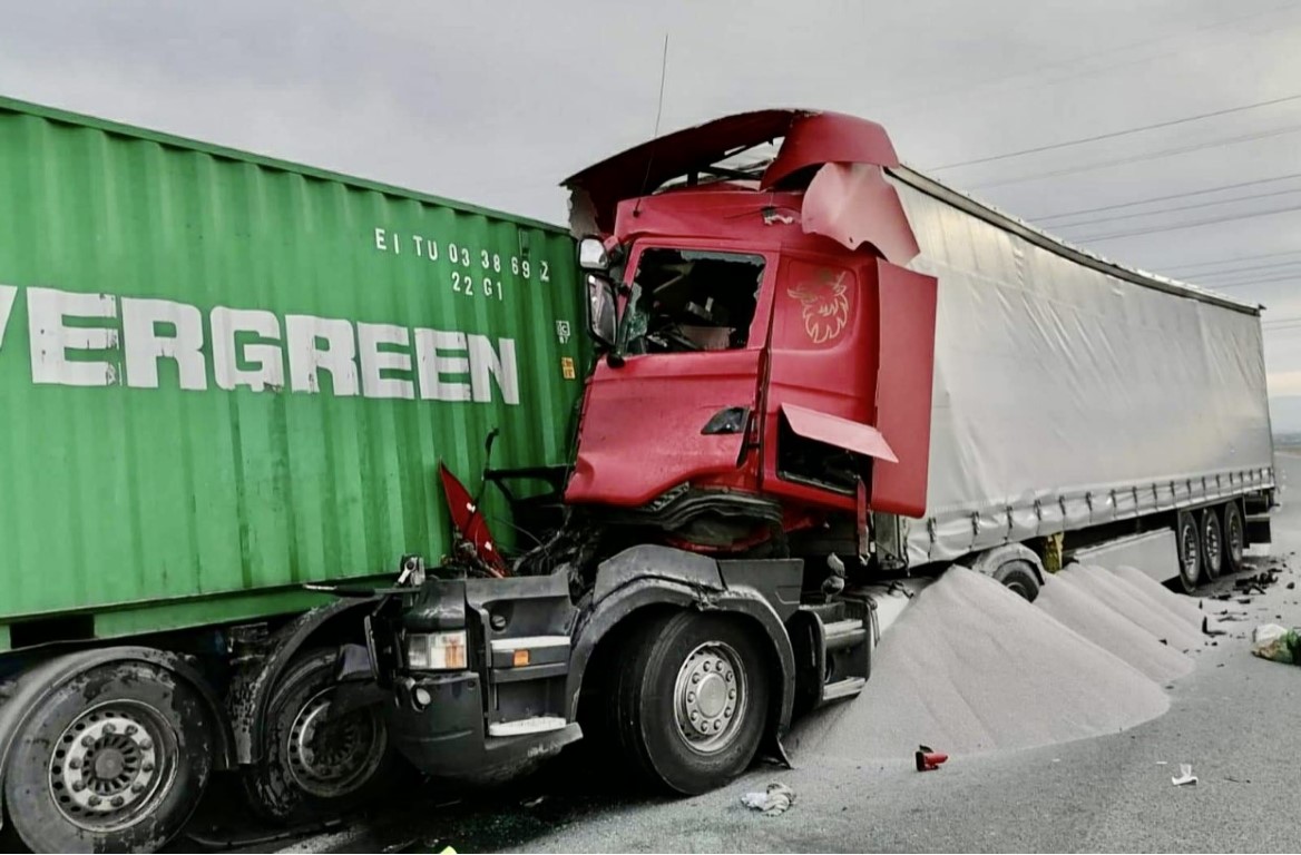 Το περιστατικό ξεκίνησε από σύγκρουση ενός οχήματος courier με φορτηγό, δημιουργήθηκε ανάσχεση, μποτιλιάρισμα και στο τελείωμα αυτού έγινε η σύγκρουση, με τον οδηγό του κόκκινου Scania να είναι σοβαρά τραυματισμένος.