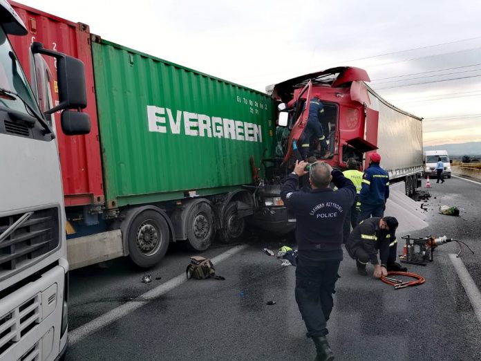 Οι δύο νταλίκες συγκρούσθηκαν μεταξύ τους, ενώ χρειάστηκαν οι δυνάμεις της πυροσβεστικής υπηρεσίας και για να απεγκλωβίσουν τον έναν οδηγό, καθώς και για να διαχωρίσουν τα δύο οχήματα.