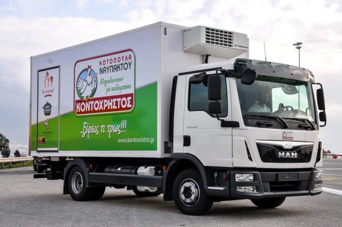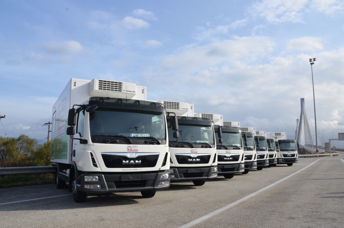 Η εταιρεία «Πτηνοτροφικές Επιχειρήσεις Ναυπάκτου Α.Ε.» συνεχίζοντας το επενδυτικό της πλάνο, αύξησε πρόσφατα τον στόλο της στα 21 ιδιόκτητα φορτηγά, προσθέτοντας 7 νέα φορτηγά – ψυγεία μάρκας MAN TGL.