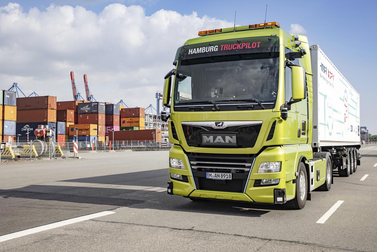 Η MAN Truck & Bus και η Hamburger Hafen und Logistik AG ολοκλήρωσαν με επιτυχία το «Hamburg TruckPilot» το καλοκαίρι του 2021. Ο στόχος του τριετούς έργου, το οποίο ήταν επίσης μέρος της στρατηγικής εταιρικής σχέσης κινητικότητας μεταξύ της πόλης του Αμβούργου και της Volkswagen AG, περιλάμβανε την ανάπτυξη και την πρακτική δοκιμή ενός αυτόνομου φορτηγού στον χειρισμό εμπορευματοκιβωτίων στο HHLA Container Terminal Altenwerder (CTA). Κατά τη διάρκεια των πρακτικών δρομολογίων, ο συνεργάτης logistics, «Spedition Jakob Weets e.K.» από το Emden, μετέφερε αρχικά εμπορευματοκιβώτια μήκους 40 ποδιών που ελεγχόταν από οδηγό για λογαριασμό της Volkswagen Group Logistics στον τερματικό σταθμό CTA στο λιμάνι του Αμβούργου. Εκεί, το φορτηγό διέσχισε αυτόνομα την περιοχή του τερματικού σταθμού και κινήθηκε ομαλά σε μικτή κυκλοφορία με άλλους χρήστες του δρόμου. Κατευθύνθηκε στον προορισμό του, στη λωρίδα αποθήκευσης κοντέινερ και επίσης έκανε ελιγμούς προς τα πίσω με μεγάλη ακρίβεια στη θέση στάθμευσης. Μετά τον χειρισμό των εμπορευματοκιβωτίων, το δρομολόγιο της επιστροφής στην πύλη ελέγχου ήταν εξίσου αυτόνομο και πέρα από τους χώρους του τερματικού σταθμού, ο οδηγός της εταιρίας ανέλαβε και πάλι τον χειρισμό του φορτηγού.
