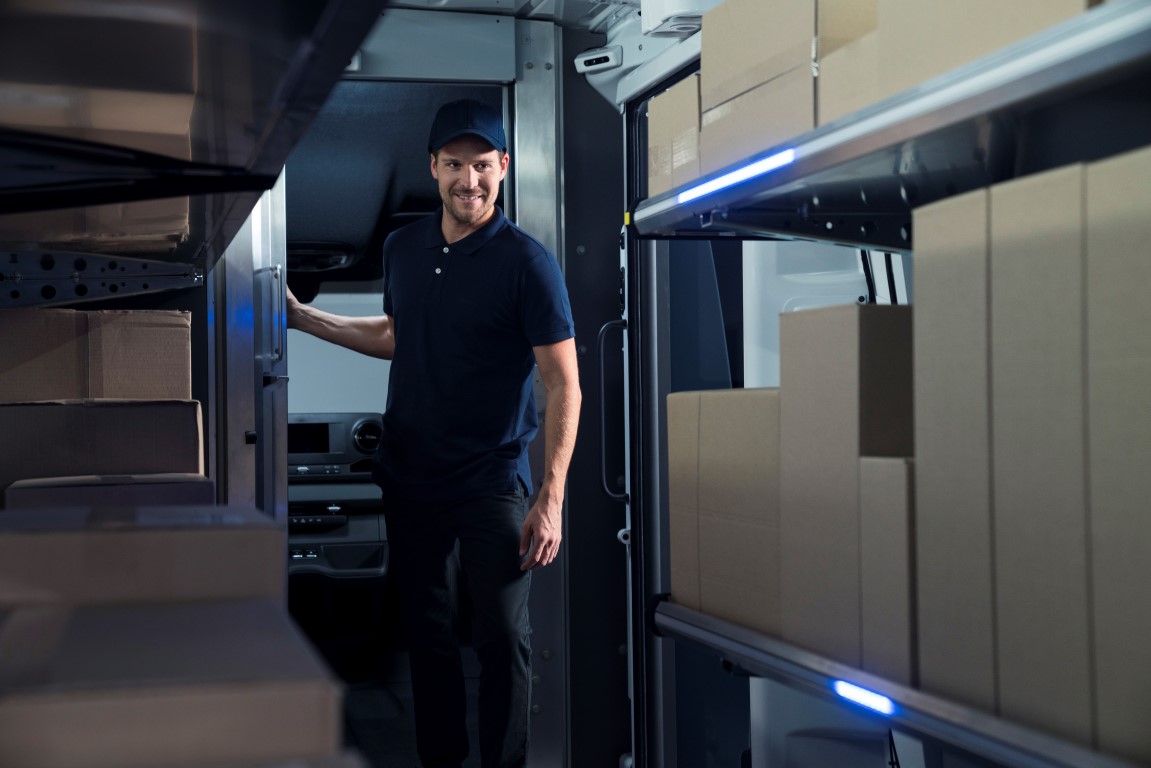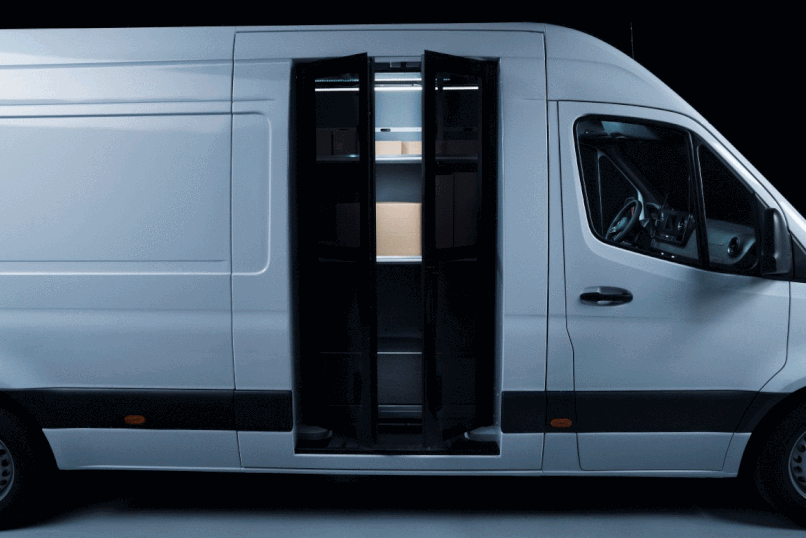 Στην πράξη, ένας χρήστης που εκτελεί παραδόσεις δεμάτων μπορεί να εξέλθει και να εισέλθει στο όχημα έως και 350 φορές κάθε μέρα, μεταφέροντας βαριά δέματα σε ακτίνα 300 μέτρων. Μια διαδικασία που απαιτεί δύναμη και καταπονεί την πλάτη. Η λύση της Mercedes-Benz έχει αναπτύξει τον αυτοματοποιημένο έλεγχο των θυρών με αισθητήρες, με γρήγορο άνοιγμα, περιστρεφόμενη πόρτα στον χώρο φόρτωσης και ειδικούς αισθητήρες για την αναγνώριση του χρήστη. Μόλις ο οδηγός εγκαταλείψει τον χώρο φόρτωσης, η πόρτα κλειδώνει αυτόματα και αυτό εξοικονομεί έως και 10 δευτερόλεπτα ανά στάση ή έως και 25 λεπτά σε έναν γύρο παραδόσεων με 150 στάσεις. Η πόρτα προσφέρει επίσης χειροκίνητη λειτουργία, κατά την οποία οι αισθητήρες απενεργοποιούνται και η πόρτα ανοίγει ή κλείνει με έναν διακόπτη.