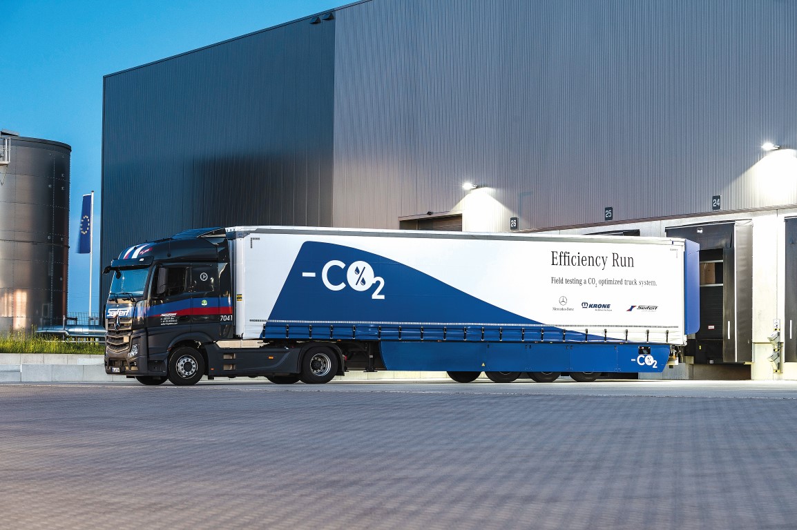 Πέρυσι το καλοκαίρι οι Γερμανοί της Mercedes-Benz παρουσίασαν τα αποτελέσματα μιας δοκιμής με την ονομασία «Efficiency Run 2015», βάσει των οποίων είναι δυνατή η μείωση της κατανάλωσης καυσίμου -και κατά συνέπεια των εκπομπών CO2– κατά διψήφιο ποσοστό. Η σειρά δοκιμών διεξήχθη από τη Mercedes-Benz σε συνεργασία με τις κορυφαίες γερμανικές εταιρίες logistics DB Schenker Logistics, Grosse-Vehne και Elflein προκειμένου να περιλαμβάνει γνήσιες εμπορευματικές μεταφορές, με τα φορτηγά να κινούνται σε πραγματικά δρομολόγια, υπό ρεαλιστικές συνθήκες.