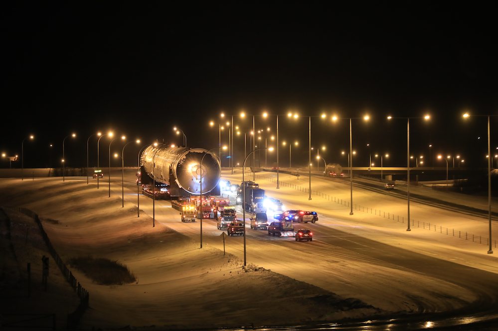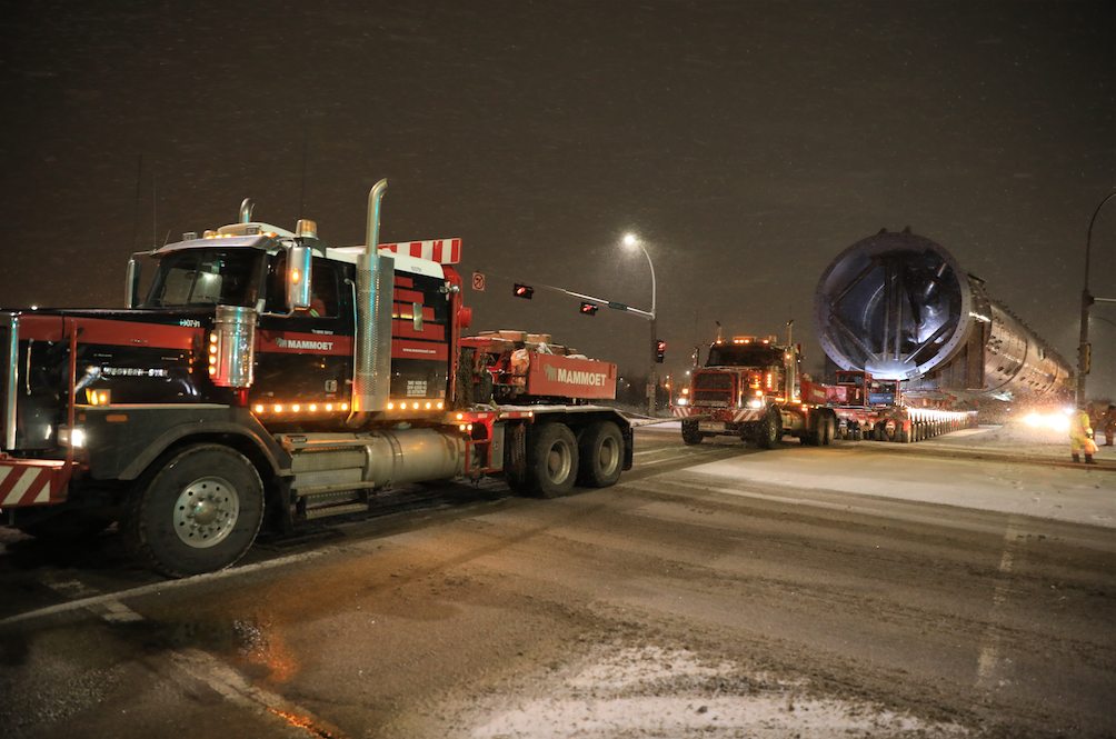 Το βαρύτερο κομμάτι εξοπλισμού που έχει ποτέ ταξιδεύσει στους δρόμους της Αλμπέρτα βθέθηκε στο δρόμο από το εργοστάσιο κατασκευής στο Έντμοντον μέχρι την τοπoθεσία μιας νέας πετροχημικής εγκατάστασης στο Fort Saskatchewan.
