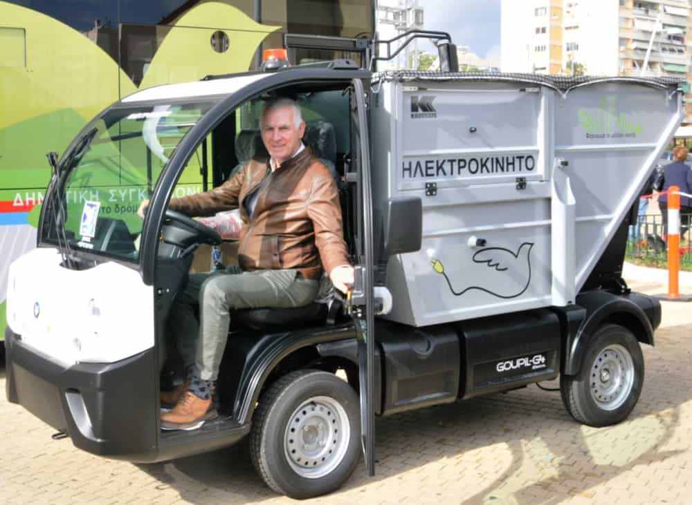 ΧΑΡΑΚΤΗΡΙΣΤΙΚΑ Κινητήρας ισχύος 67 HP Μέγιστη ταχύτητα 110 km/ώρα Αυτονομία 170 km Φόρτιση με απλό φορτιστή 7,5 ώρες Φόρτιση με ταχυφορτιστή 30 min - 3 οχήματα GOUPIL G4 ανατρεπόμενα ημιφορτηγά για την συλλογή υπολειμμάτων πρασίνου και ογκωδών αντικειμένων σε σημεία χαμηλής όχλησης και περιβαλλοντικής ευαισθητοποίησης όπως π.χ. στο Βιοκλιματικό Πάρκο της Χωράφας , Άλσος , Πεζοδρόμους κ.λ.π.