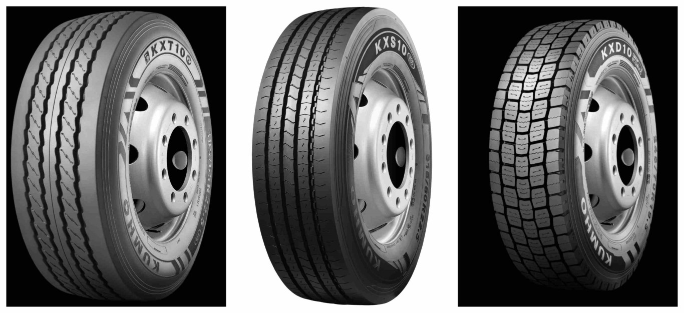 Το Kumho KXT10 που παρουσιάστηκε σε διάσταση 385/65 R22.5, είναι σχεδιασμένο για χρήση σε τρέιλερ φορτηγών περιφερειακών και μεγάλων αποστάσεων. Το X στην ονομασία αναφέρεται στην ευελιξία αυτού του ελαστικού πολλαπλών επιδόσεων, το οποίο προσφέρει εξαιρετική αντοχή στη φθορά και μέγιστη πρόσφυση. Στο προφίλ του φέρει το σύμβολο της χιονονιφάδας (3PMSF) και σήμανση M+S, επομένως είναι εξίσου κατάλληλο για χειμερινές και θερινές συνθήκες. Το Kumho KCA03 είναι ένα προϊόν για πολλαπλούς άξονες ειδικά σχεδιασμένο για χρήση σε λεωφορεία πόλης και παρουσιάστηκε σε κλασική διάσταση 275/70 R22.5.