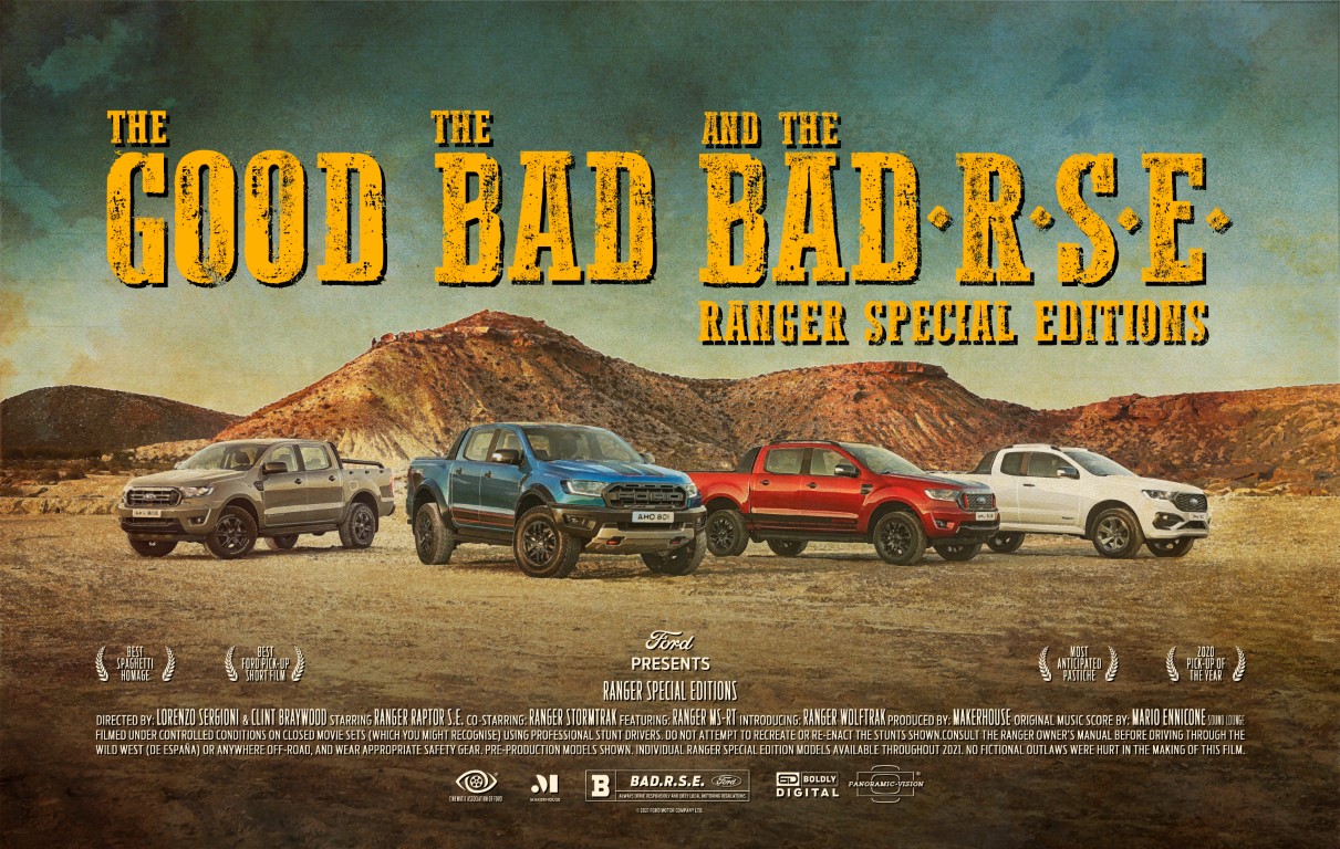 Στη νέα ταινία της Ford «The Good, the Bad and the Bad-RSE», η Ranger Raptor Special Edition αποφεύγει τους εχθρικούς ληστές σε μια πόλη με στυλ Άγριας Δύσης, με τη βοήθεια άλλων μοντέλων Ranger. Με πολλές αναφορές σε εμβληματικές ταινίες γουέστερν, η ταινία γυρίστηκε στην Ισπανία, σαν μια γνήσια ταινία Spaghetti Western και ακολουθεί τα άλματα και τα power-slides του αρχικού βίντεο εκκίνησης του Ranger Raptor, το οποίο έχει προβληθεί έκτοτε περισσότερες από πέντε εκατομμύρια φορές.