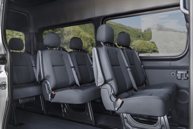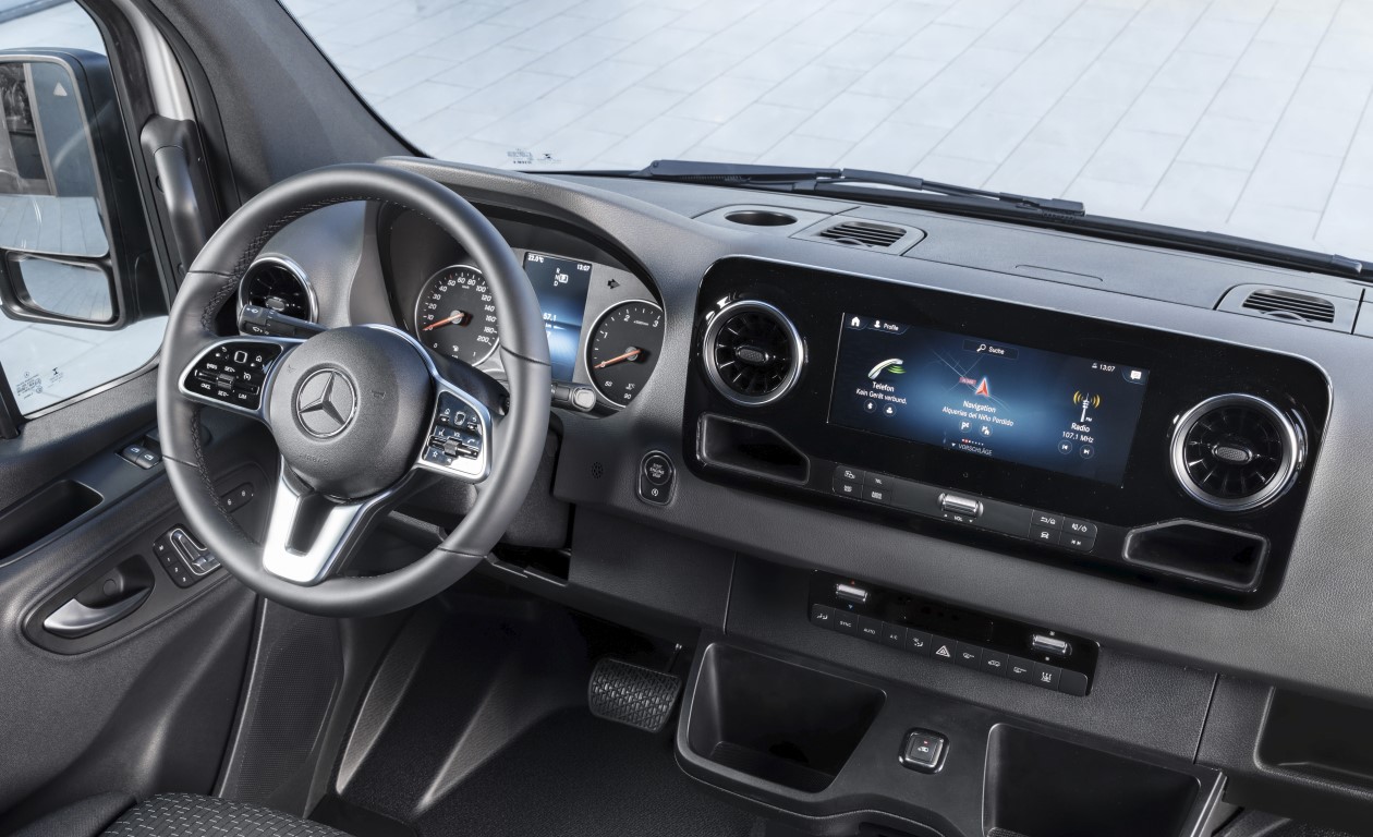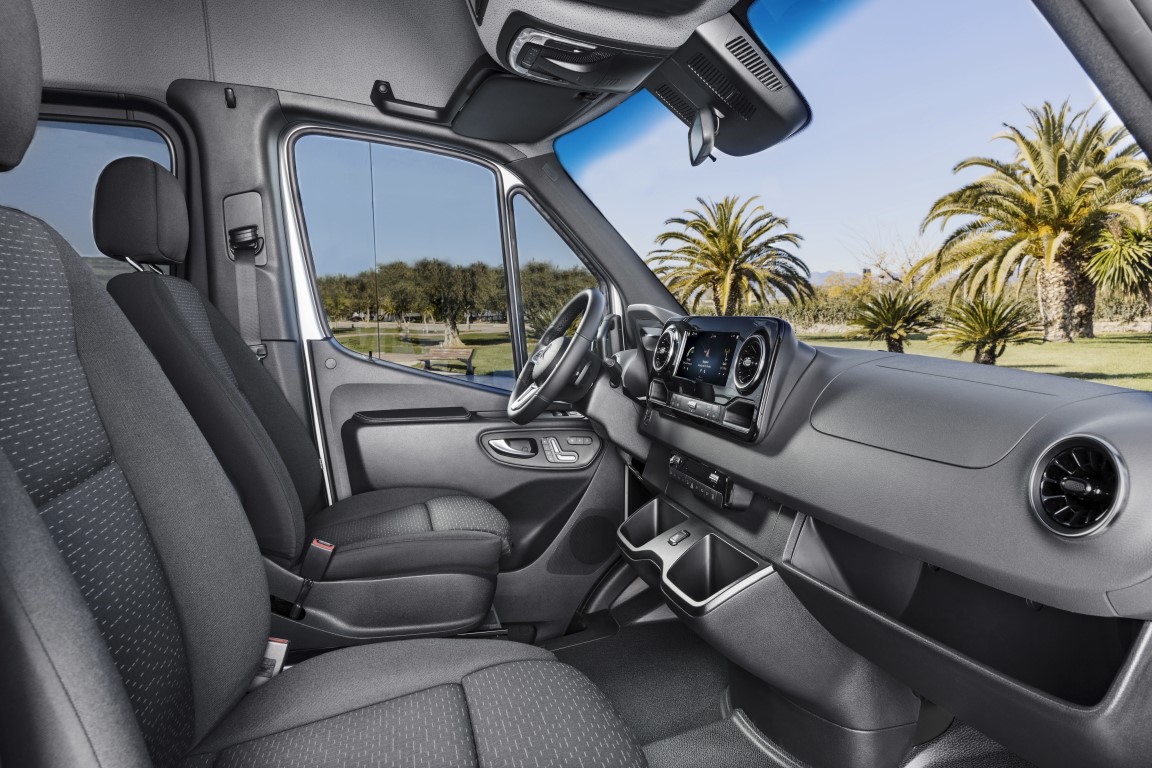 Την στιγμή που εξωτερικά, το νέο Sprinter διατηρεί τα βασικά σχεδιαστικά του προκατόχου του, η καμπίνα είναι ο χώρος που εντοπίζουμε τις περισσότερες αλλαγές, τόσο σε επίπεδο αισθητικής όσο υλικών και εξοπλισμού. Τα επανασχεδιασμένα καθίσματα δίνουν έμφαση στην στήριξη της σπονδυλικής στήλης, με αυτό του οδηγού να επιτρέπει την ακριβή ρύθμιση στις ανάγκες του εκάστοτε σωματότυπου και με δυνατότητα απομνημόνευσης των ρυθμίσεων στα ηλεκτρικώς ρυθμιζόμενα καθίσματα.