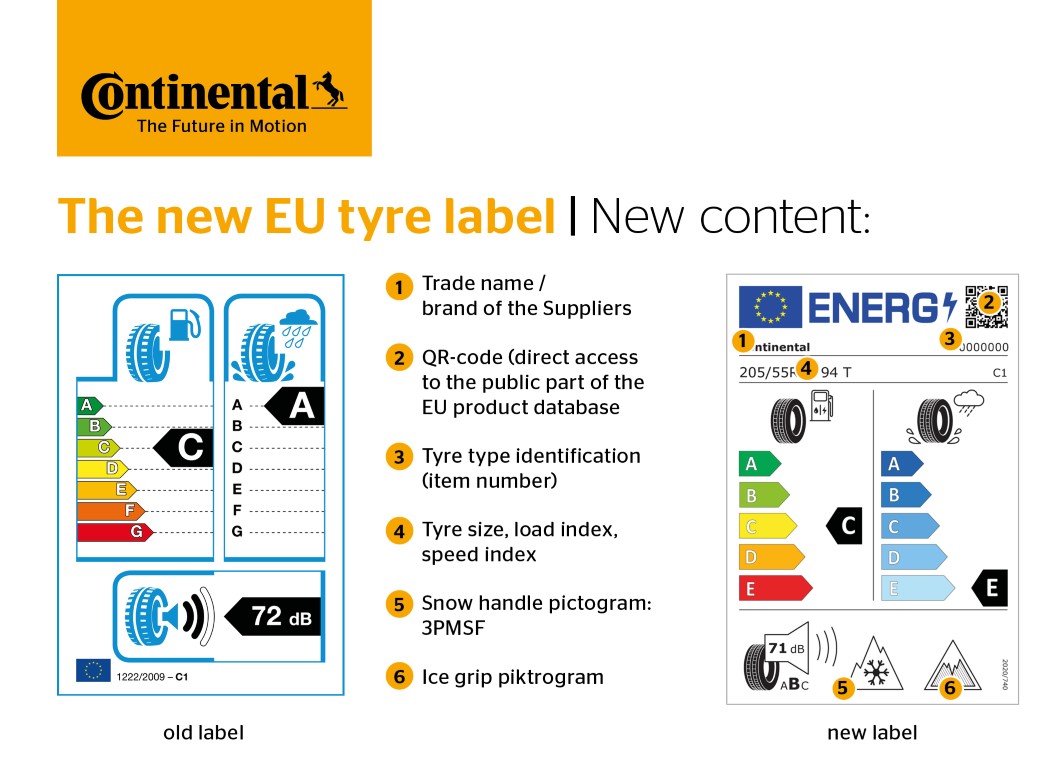 Τον Μάιο του 2021, θα παρουσιαστεί στους καταναλωτές μια νέα ετικέτα ελαστικών, με πιο περιεκτικές και νέα δομή πληροφορίες, για συγκεκριμένα χαρακτηριστικά τους, όπως η αντίσταση κύλισης και η απόδοση στο βρεγμένο. Η απόδοση θορύβου θα αναφέρεται με τον αριθμό των ντεσιμπέλ και τα γράμματα A, B ή C. Οι καταναλωτές θα έχουν πρόσβαση σε επιπρόσθετες πληροφορίες για τα ελαστικά που επιλέγουν, μέσω μιας βάσης δεδομένων της Ε.Ε., έχοντας πρώτα σκανάρει έναν QR κωδικό στην ετικέτα. Ένα ακόμη χαρακτηριστικό της νέας ετικέτας αφορά σε 2 οπτικά σύμβολα, που θα δείχνουν αν πρόκειται για ελαστικό με πρόσφυση στο χιόνι, το οποίο πληροί τα πρότυπα εγκρίσεων της Ε.Ε, γνωστά και ως δοκιμές «νιφάδας χιονιού». Κι ακόμη αν πρόκειται για ελαστικό με πρόσφυση στον πάγο, χωρίς μεταλλικά καρφιά, το οποίο πληροί τα νέα ISO σχετικά πρότυπα. Επιπλέον, η νέα ετικέτα ελαστικών θα έχει διαθέσιμες πληροφορίες και για ελαστικά εμπορικών οχημάτων βαρέως τύπου (Class C3).