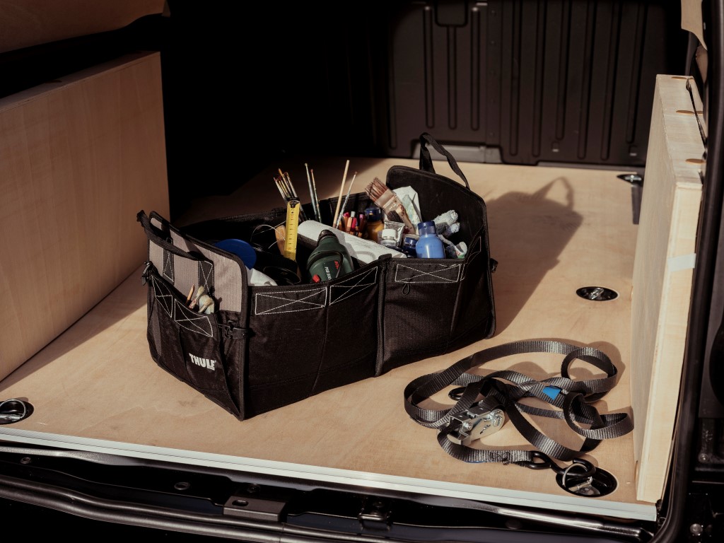 5. Για διατήρηση της τάξης και της καθαριότητας στο εσωτερικό, ένα πρακτικό organiser με δύο διαχωριστικά, διαστάσεων 61x34x31 cm, διατίθεται για όλες τις εκδόσεις του Combo (68€ λιανική τιμή με ΦΠΑ). Εκεί μπορούν να τοποθετηθούν διάφορα αντικείμενα, από πινέλα ζωγραφικής μέχρι εργαλεία υδραυλικού, ενώ όταν δεν χρησιμοποιείται αναδιπλώνεται με πάχος περίπου 30mm. Αποθηκευτικοί χώροι για μικρότερα αντικείμενα, όπως χαρτομάντιλα, σημειωματάρια και υλικά μακιγιάζ, προσφέρονται στη μορφή ένθετων ποτηροθηκών (27€ λιανική τιμή με ΦΠΑ).Opel Magalog - Künstlerin Maria Engels