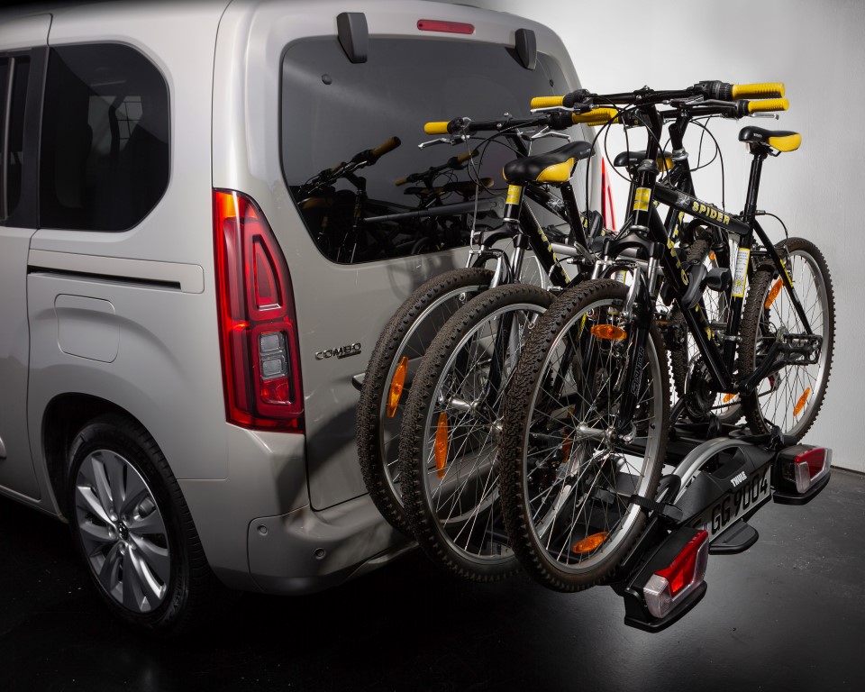 2. Μία ευρεία γκάμα σχαρών για ποδήλατα (μέχρι δύο ηλεκτρικά e-bikes ή τέσσερα συμβατικά) που τοποθετούνται στον κοτσαδόρο. Εναλλακτικά, χρησιμοποιώντας τις σχετικές σχάρες σε συνδυασμό με την αλουμινένια βασική σχάρα οροφής (από 219€ λιανική τιμή με ΦΠΑ), το Combo (με ή χωρίς ράγες οροφής) μπορεί να μεταφέρει μέχρι δύο συμβατικά ποδήλατα, ποικίλες μπαγκαζιέρες οροφής (από 217€ λιανική τιμή με ΦΠΑ) με χωρητικότητα έως 320 L ή ικανότητα φορτίου έως 50kg), ένα καγιάκ, ακόμα και ένα snowboard.Opel Combo
