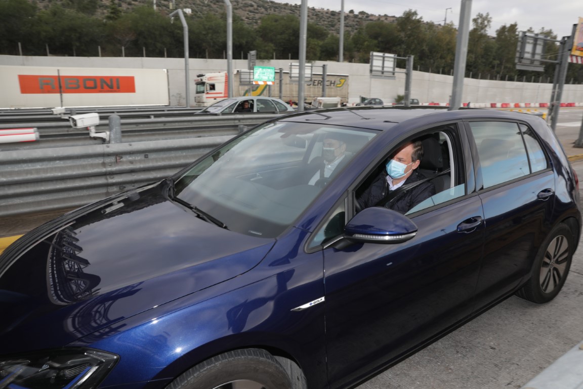 Πρεμιέρα σήμερα στην αναλογική χιλιομετρική χρέωση στα διόδια, με τη δοκιμή του υβριδικού συστήματος Hybrid ETC στην Ολυμπία Οδό από τον υπουργό Υποδομών και Μεταφορών Κώστα Αχ. Καραμανλή και τον γενικό γραμματέα Γιώργο Καραγιάννη.