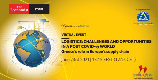 Συνέδριο με τίτλο «Logistics: challenges and opportunities in a post COVID-19 world – Greece’s role in Europe’s Supply Chain» πραγματοποιεί η Ελληνική Εταιρεία Logistics (EEL) σε συνεργασία με τα συνέδρια του Εconomist, στις 23 Ιουνίου 2021.