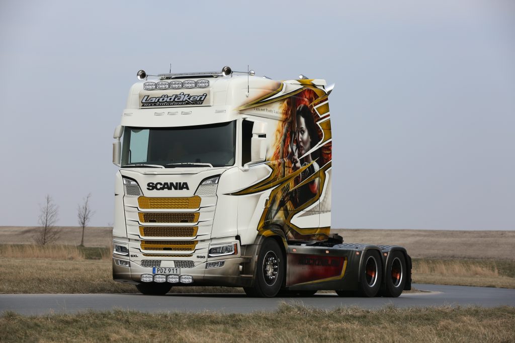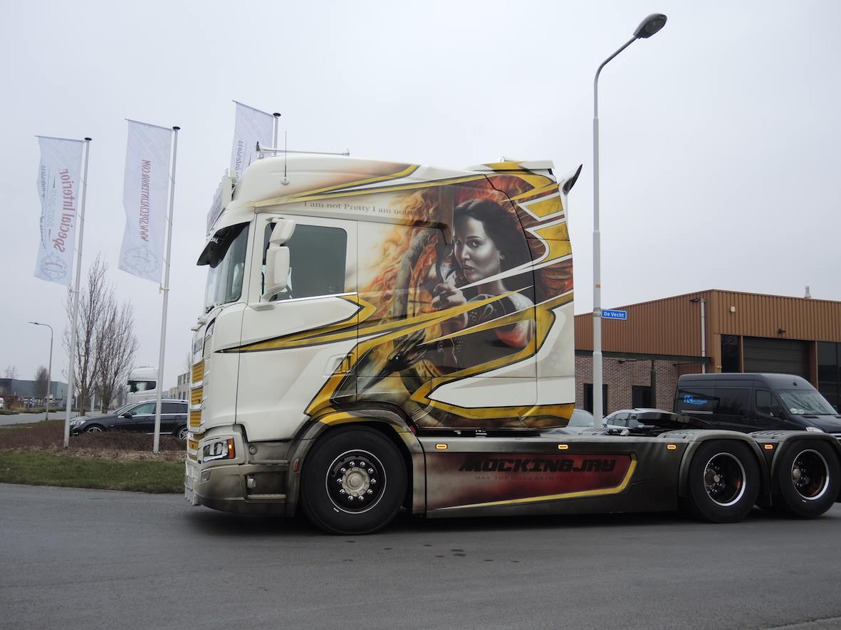 Στις αρχές Μαρτίου και αφού πέρασε απο τα γκαράζ των καλύτερων customizers της Ολλανδίας, το Scania SXL 500 LongLine πάτησε άσφαλτο. Πρόκειται για τον πρώτο τράκτορα νέας γενιάς της Scania με επιμηκυμένη καμπίνα, αφού το γνωστό για τις μετατροπές του συνεργείο Van Winkoop πρόσθεσε 120 εκατοστα στο σασί του τράκτορα. Το 6Χ2 S-Cab των 500 ίππων έπειτα δέχθηκε τις περιποιήσεις, εντός και εκτός. Αυτές περιλαμβάνουν αερογραφίες απο την MW Deisgns με θέμα την ταινία «Hunger Games», με το πορτρέτο της Jennifer Lawrence να κοσμεί τις πλευρές του τράκτορα. H εταιρία Special Interior ανέλαβε το εσωτερικό της καμπίνας όπου προστέθηκαν το ηχοσύστημα, φωτισμοί LED, επένδυση απο δέρμα και ένα κυκλικό τραπέζι με ένα διπλό κρεβάτι. Επίσης επιπλέον χώροι αποθήκευση, ψυγείο, καφετιέρα και άλλα στοιχεία άνεσης. Τέλος, ο Σουηδός ιδιοκτήτης του, Lasse Hansen θα το χρησιμοποιεί για τη μεταφορά χάλυβα, ενώ είναι σίγουρο ότι θα σαρώσει τα βραβεία στα ευρωπαϊκά Truck Shows.