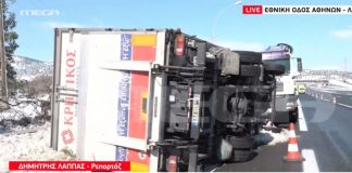 Ανατράπηκε φορτηγό στην Εθνική οδό Αθηνών – Λαμίας
