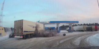 Η στιγμή που σκάει ένα ελαστικό φορτηγού