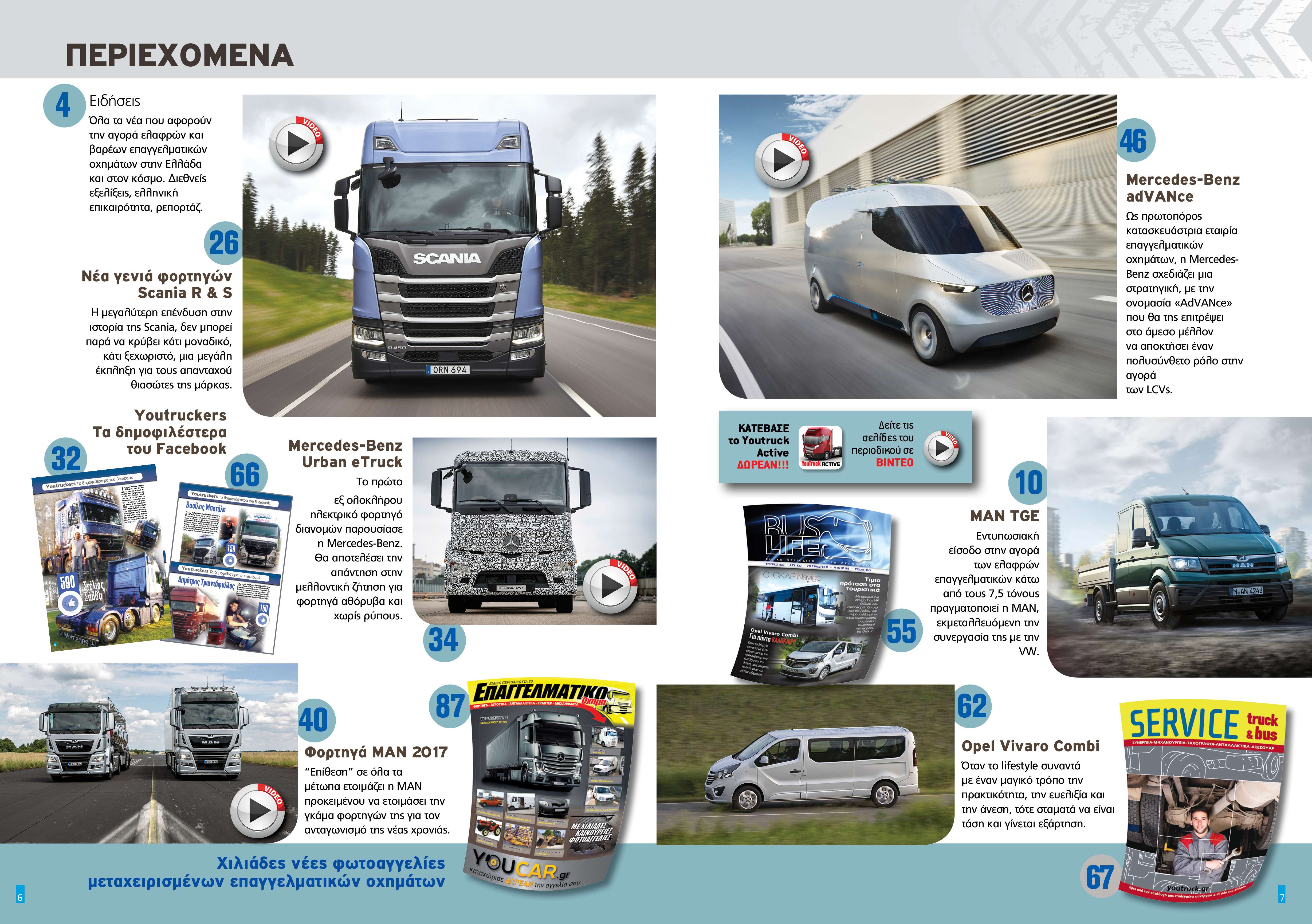 Η σεζόν ξεκινά δυναμικά και για το YouTruck Magazine με πνεύμα ανανέωσης σε όλα τα επίπεδα, ξεκινώντας από το ηλεκτρονικό «αδερφάκι» του περιοδικού, youtruck.gr. Η ιστοσελίδα επέστρεψε στις οθόνες των υπολογιστών με νέα εμφάνιση και ακόμα πιο πλούσια ειδησεογραφία, άρθρα, συνεντεύξεις, ρεπορτάζ και παρουσιάσεις. Οι αναγνώστες έχουν την δυνατότητα να ξεφυλλίσουν μέσα από την ιστοσελίδα τα τελευταία τεύχη του περιοδικού Youtruck Magazine και να κατεβάσουν γρήγορα και απλά την εφαρμογή Youtruck Active, που προσφέρει μια σειρά από χρήσιμα εργαλεία για τον επαγγελματία του κλάδου.