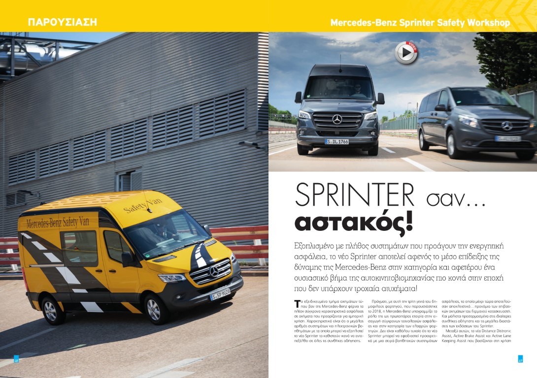 Με το νέο Sprinter, η MercedesBenz υπογραμμίζει το ρόλο της ως πρωτοπόρος εταιρία στην εισαγωγή σύγχρονων τεχνολογιών ασφάλειας και στην κατηγορία των ελαφρών φορτηγών