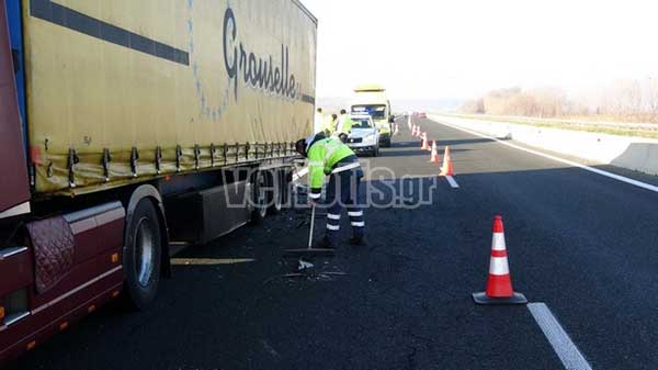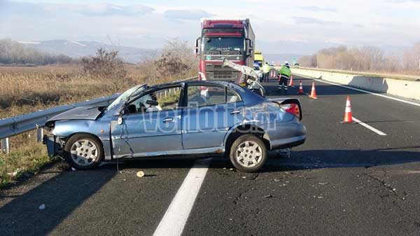 Το Ι.Χ. και φορτηγό που κινούνταν στο ρεύμα προς Θεσσαλονίκη, κάτω από αδιευκρίνιστες συνθήκες συγκρούστηκαν μετά τα ΣΕΑ Πλατάνου, λίγο πριν την έξοδο για Κλειδί.