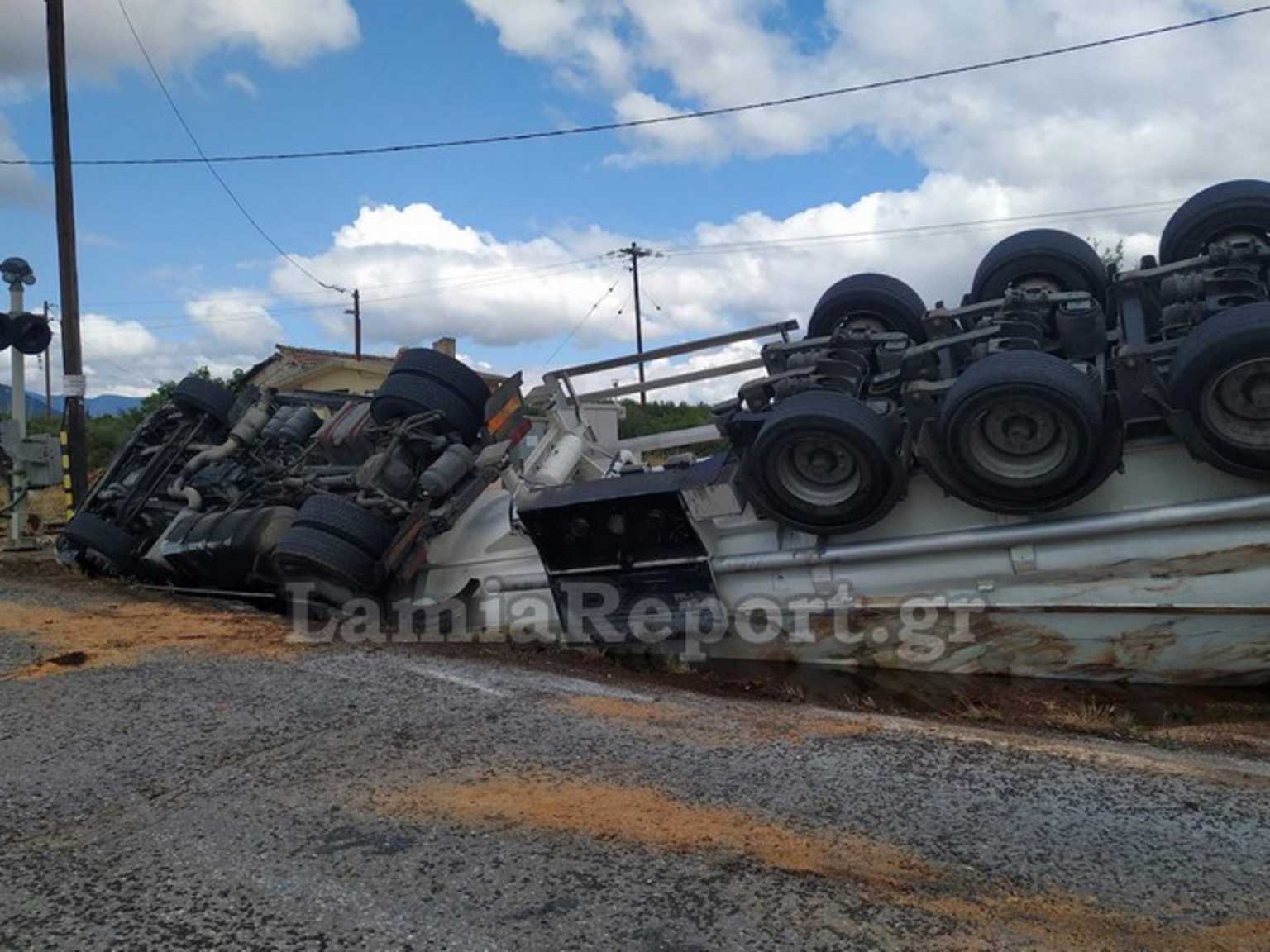 Σύμφωνα με το lamiareport.gr, το μεγάλο όχημα ήταν φορτωμένο με βαμβακέλαιο και άγνωστο κάτω από ποιες συνθήκες, εξετράπη της πορείας του και ανετράπη στα χωράφια.